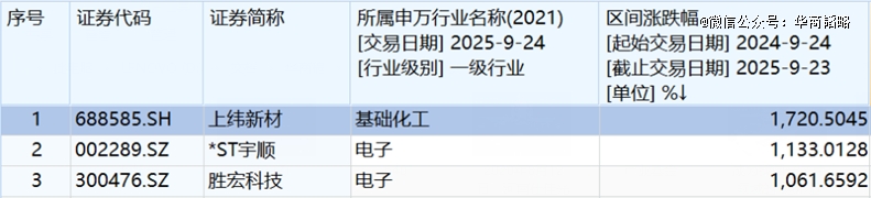 “924”行情一周年,人们盘点发现:A股有1435只股票完成翻番,并诞生了上纬新材(1720.5%)、*ST宇顺(1133.01%)、胜宏科技(1061.66%)三只10倍牛股。